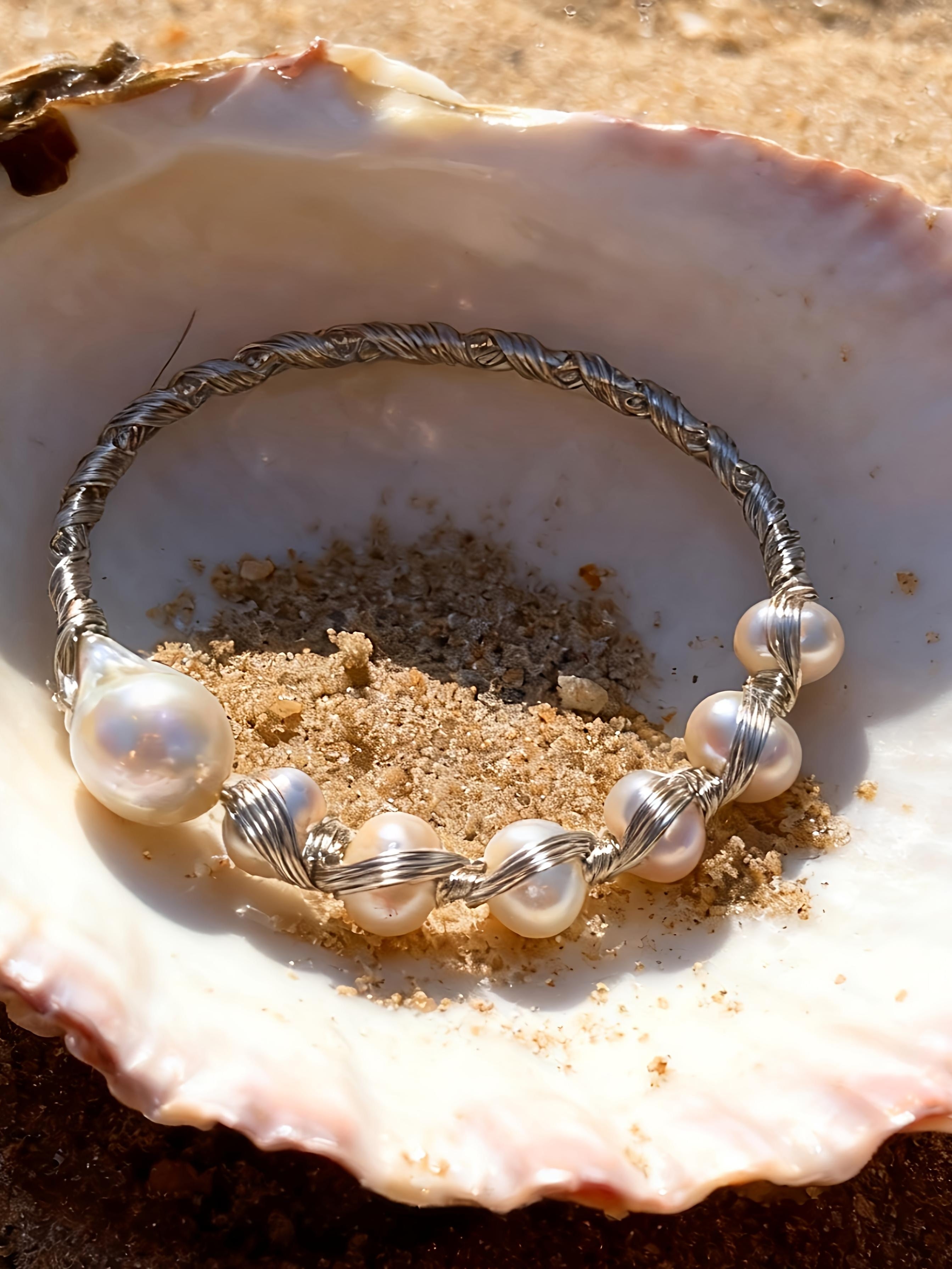 TPL01 The Pearl Light PREMIUM Freshwater Cultured Baroque Pearl Free Size Hand Wired Designer Cuff Bracelet