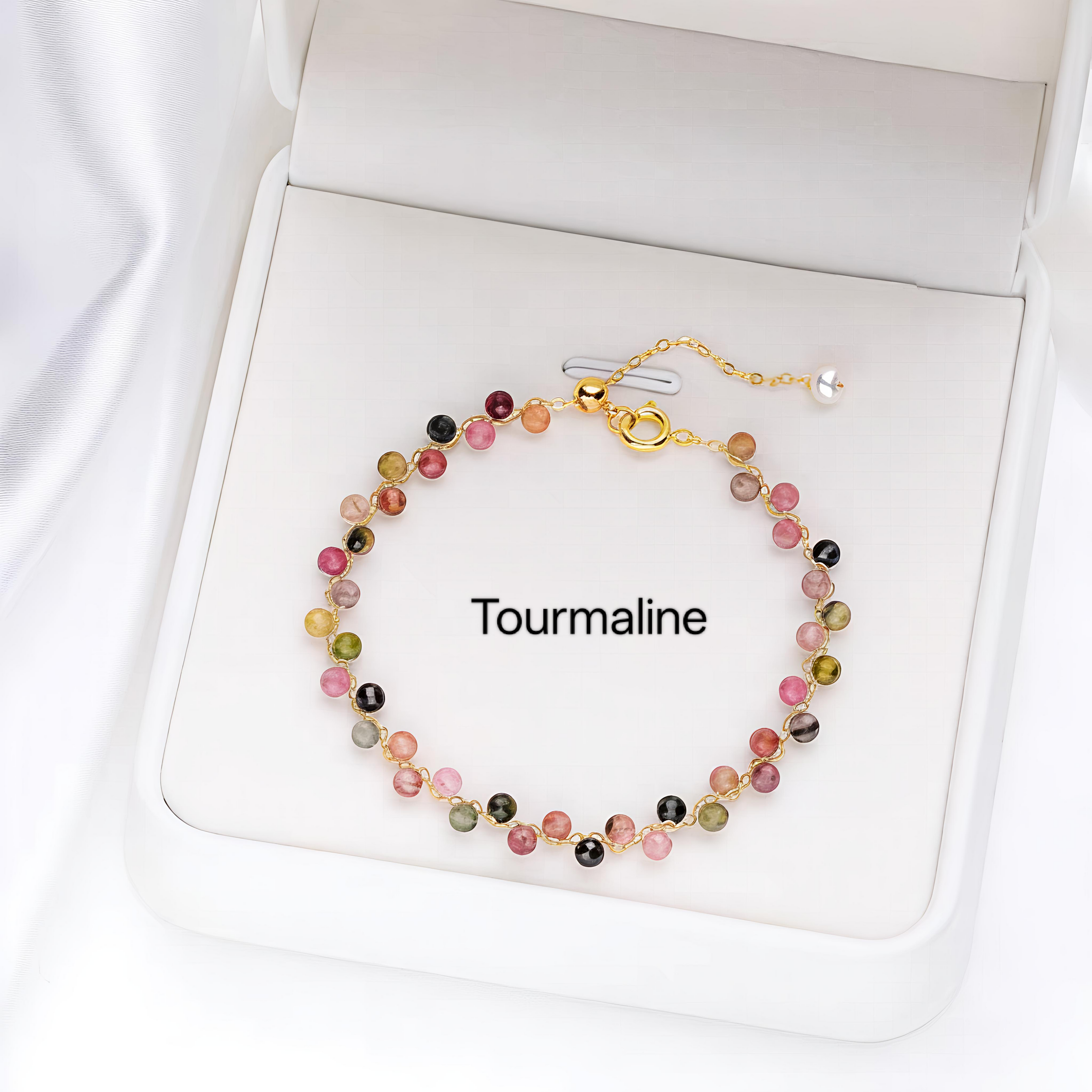PCB03G PREMIUM Natural Crystal + Freshwater Pearl 14k Plated Adjustable Bracelet - Tourmaline