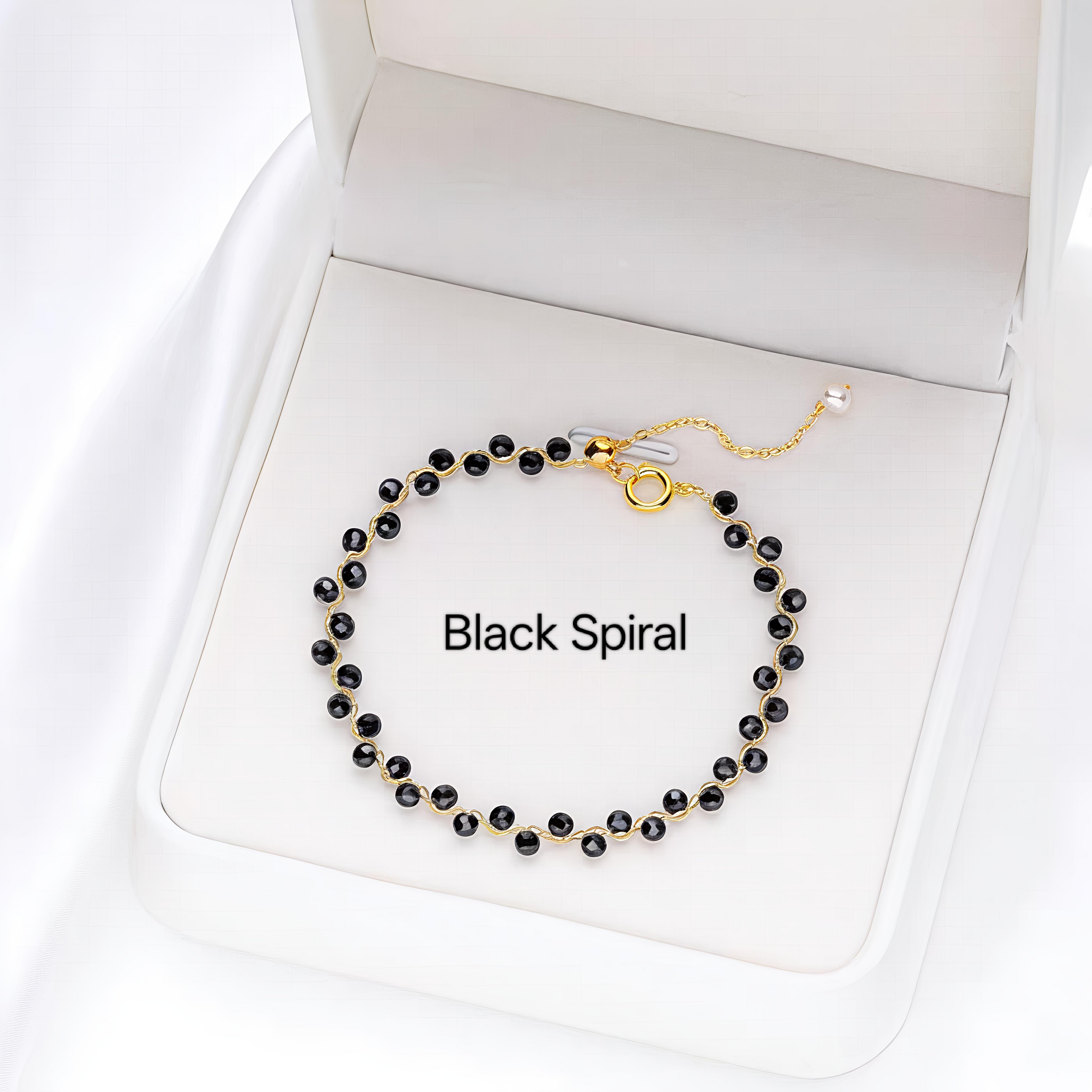 PCB03F PREMIUM Natural Crystal + Freshwater Pearl 14k Plated Adjustable Bracelet - Black Spiral