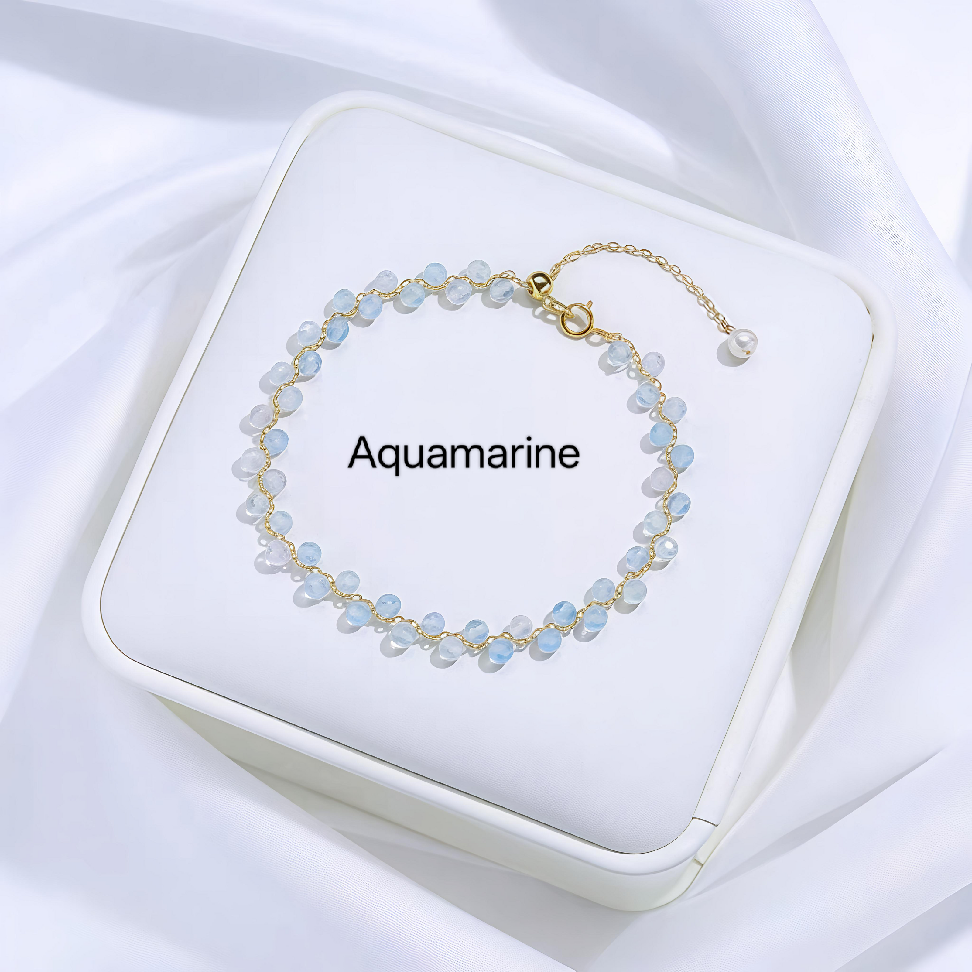 PCB03C PREMIUM Natural Crystal + Freshwater Pearl 14k Plated Adjustable Bracelet - Aquamarine