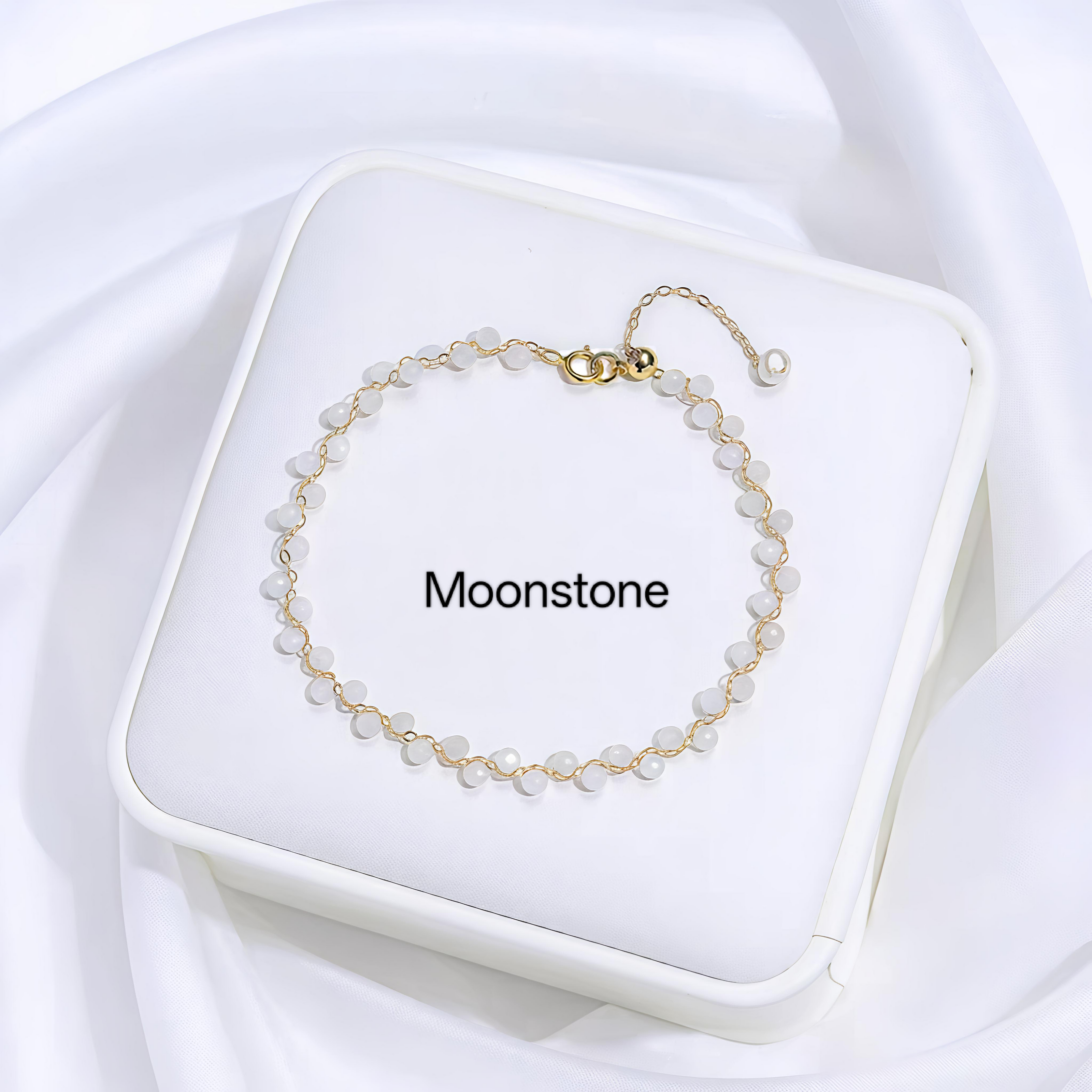 PCB03B PREMIUM Natural Crystal + Freshwater Pearl 14k Plated Adjustable Bracelet - Moonstone