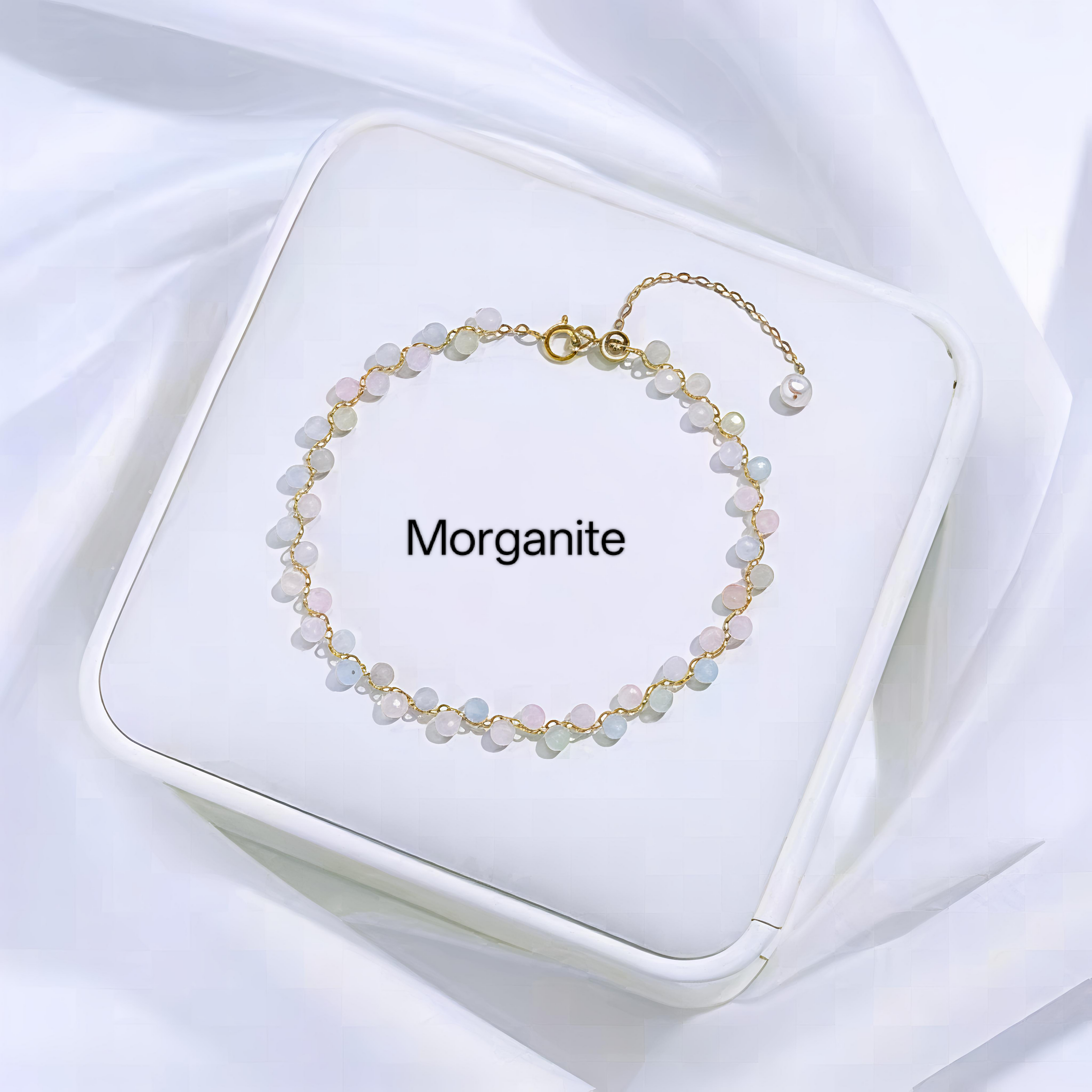 PCB03A PREMIUM Natural Crystal + Freshwater Pearl 14k Plated Adjustable Bracelet - Morganite