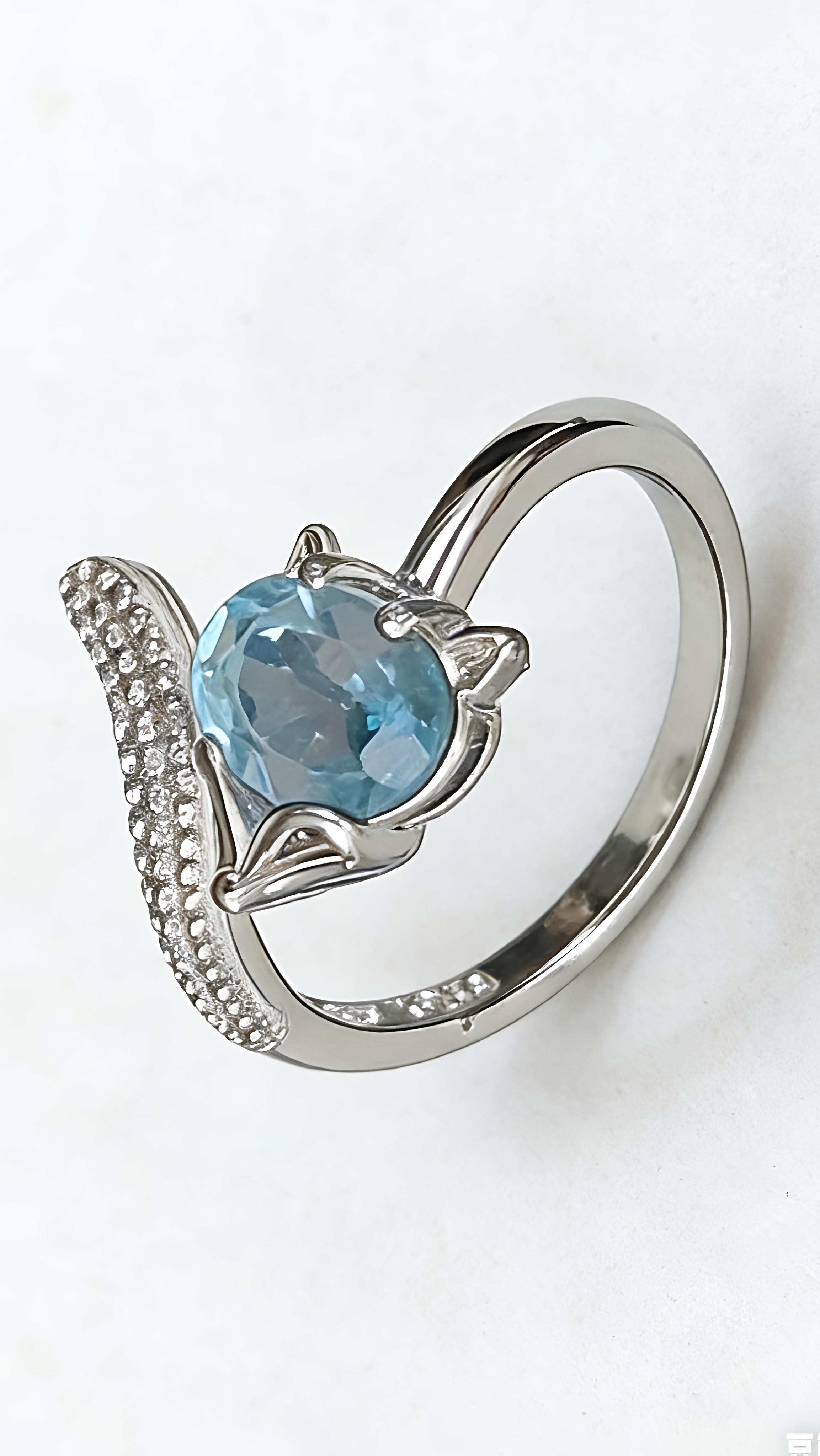 PCS02 PREMIUM Blue Topaz Fox Designer S025 Silver Adjustable Ring